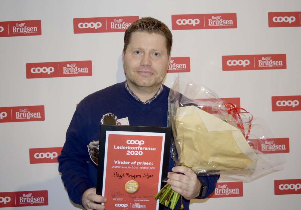 Uddeler Lars Jeppesen og resten af teamet i Dagli'Brugsen Stjær er netop kåret som distriktets bedste butik på Coops årlige lederkonference i Fredericia.