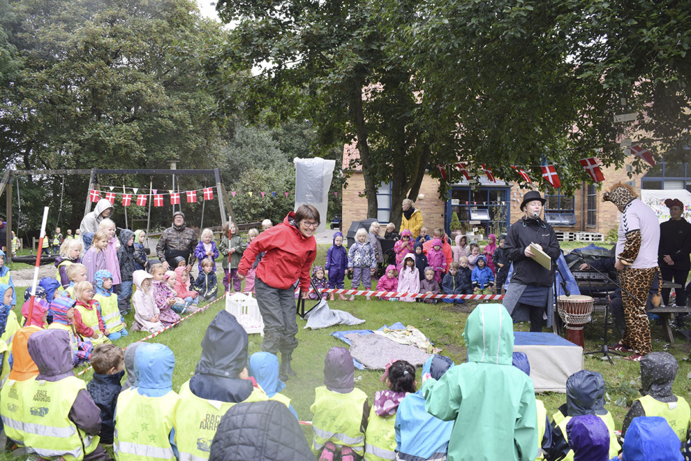 Vådt men godt. Man skulle tro der var blevet danset rigeligt med regndans da Børnehaven Porskjær i fredags havde indbudt andre daginstitutioner og dagplejen til dansedag i haven på Porskjær.