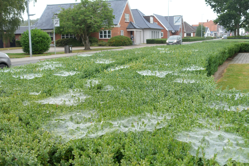 Edderkoppespind i støvregn skabte lørdag morgen et særligt sceneri ved AVK på Søndergade.