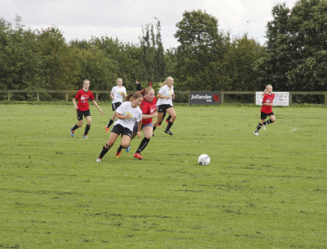 Et glimt fra pigernes halvleg ved sidste års møde mellem Gyvelhøjskolen og Skovbyskolen i forbindelse med 'Vild med Galten-Skovby'. I 2014 vandt Gyvelhøjskolen. I fjor gik titlen til Skovbyskolen. Hvem vinder på fredag?