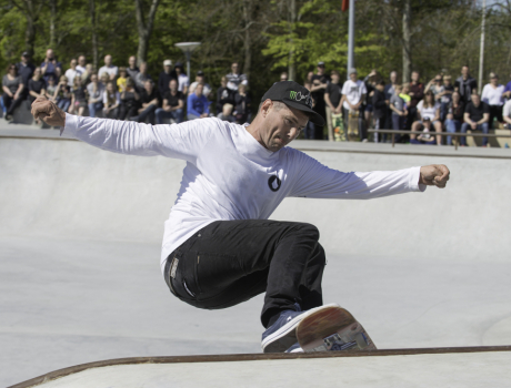 Den danske skate-stjerne Rune Glifberg vakte stor begejstring. Sammen med tre københavnske venner gav han publikum sug i maven til de vildeste tricks, der hidtil er set i den nye Skatepark.