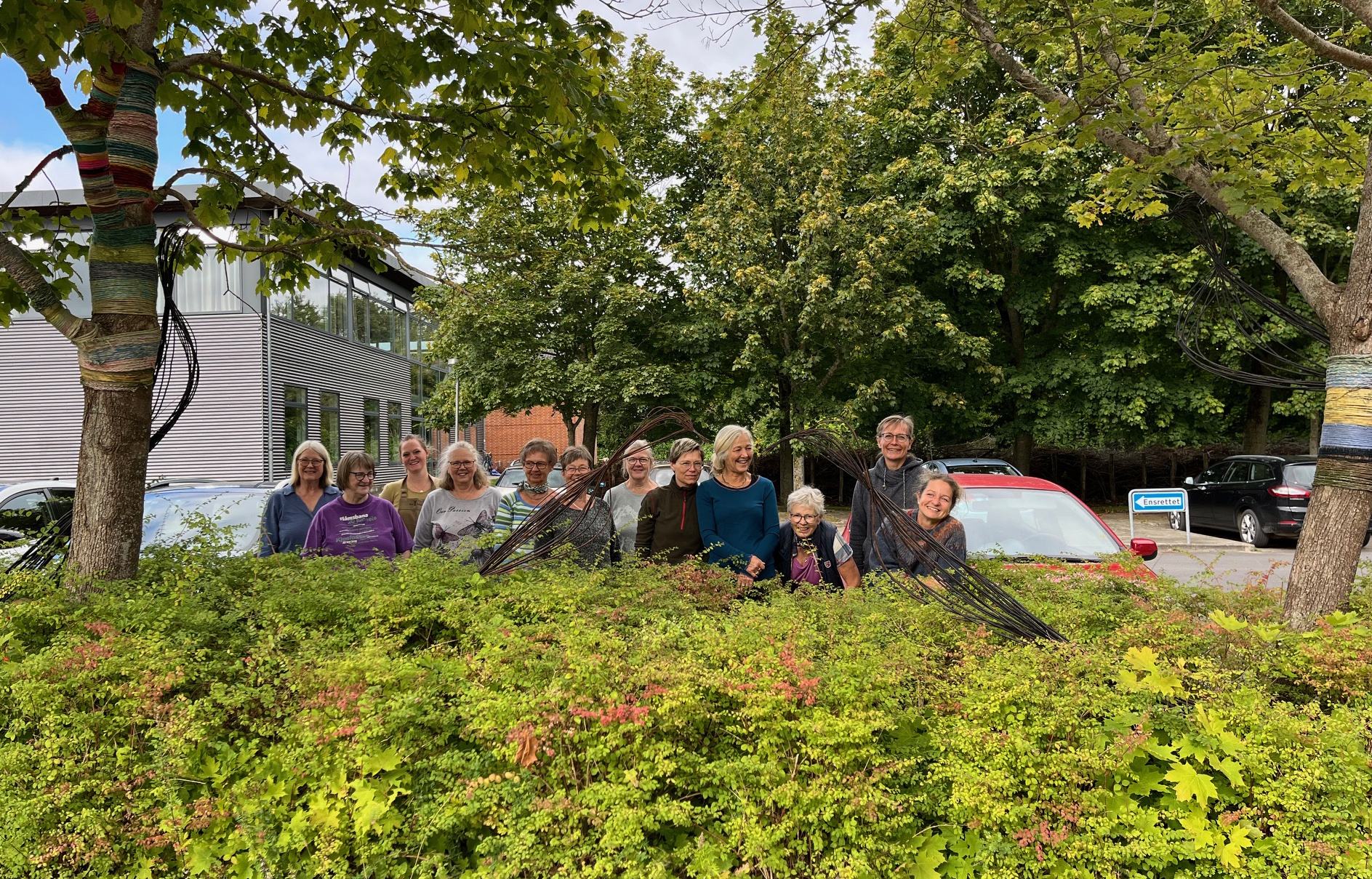 »Vi håber, at fuglene vil finde sig godt til rette og skabe et inspirerende og legende miljø for alle på skolen,« siger Conny Andersen fra Storring Pilelaug, der har lagt mange timer i at flette fugleskulpturerne.