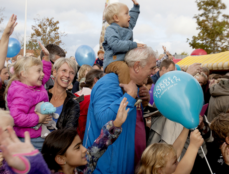 Efter fodbold og andre aktiviteter på Klank Idrætsanlæg i eftermiddagstimerne, fortsatte festen om aftenen på Torvet - bl.a. med et Gurli Gris-show som faldt i de yngstes smag, hvilket fotoet fortæller alt om.