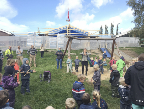 Børn, forældre og repræsentanter var onsdag eftermiddag inviteret til rejsegilde sammen med håndværkerne.