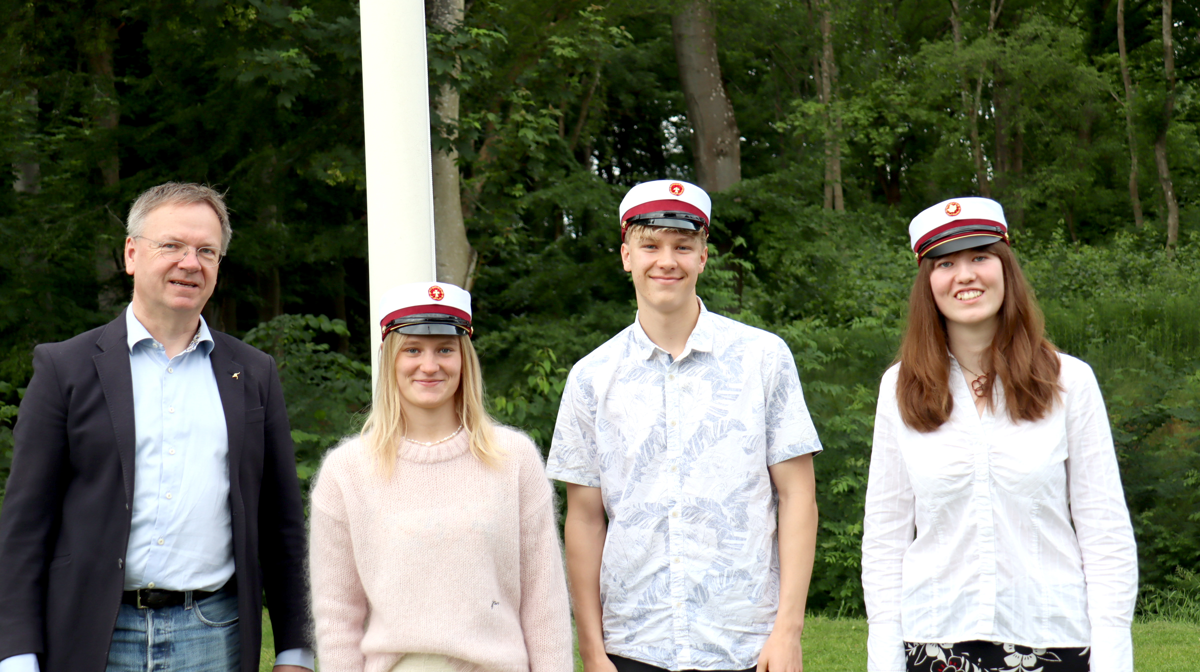 De tre første, af årets i alt 251 studenter ved Skanderborg Gymnasium, fik mandag morgen sendt flaget til tops efter veloverstået afsluttende eksamen.