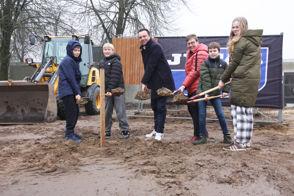 Spaderne var "genbrugs-spader". Det var samme bliver det byggeri som der i fredags blev taget de første spadestik til ved Skovbyskolen.