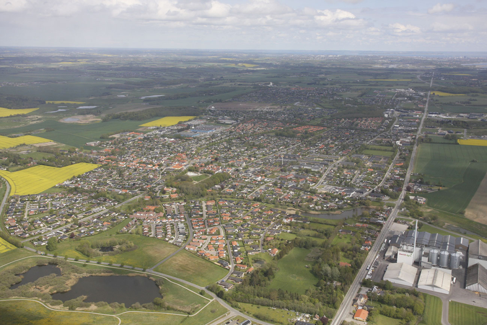 Galten-Skovby set fra vest. I løbet af et år er indbyggertallet steget med 185 personer, svarende til en befolkningstilvækst på 2,2 procent.