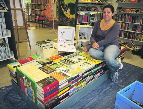»Jeg ved ikke, hvor mange bøger, der skal bruges - men det er flere hundrede. Det er alle sammen bøger, der er kasseret af biblioteket. Jeg giver dem nyt liv,« fortæller Mette Mailund Strong.