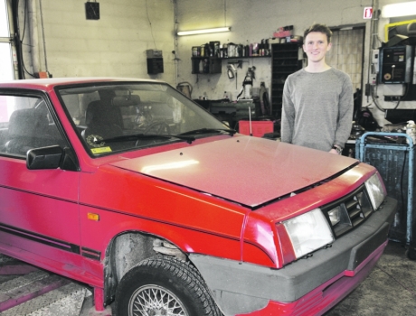 Martin Rasmussen og Lada'en der skal fragte ham og to af hans venner 13.000 km væk hjemmefra. Bilen kan ikke køre lige nu, men skal nok blive klar inden længe, så den kan blive prøvekørt grundigt inden planlagt afgang 6. juli.