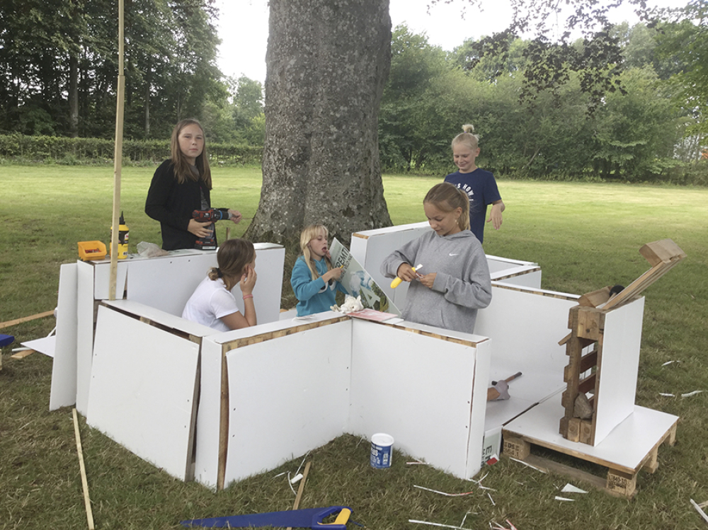 »Temaet i år var genbrug. Vi havde fået en stabel paller fra Flugger Galten, en stak plakater fra valgkampen og andre effekter, der kunne omdannes efter børnenes egne ideer,« fortæller Karen Lindemann fra DUI.