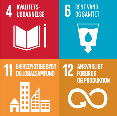 De fire punkter er: 4: Kvalitetsuddannelse. 6: Rent vand og sanitet. 11: Bæredygtige byer og lokalsamfund. 12 Ansvarligt forbrug og produktion.