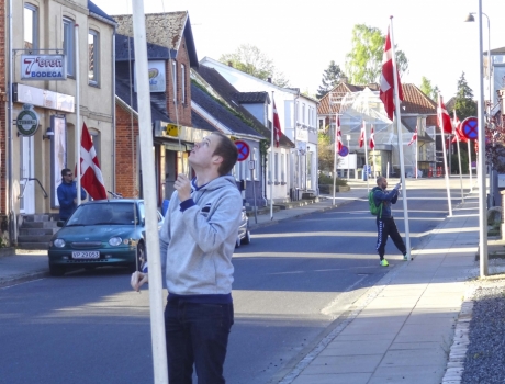 Det er frivillige fra Galten FS som står for at opstille flagalléen i Galten ved særlige lejligheder - f.eks. ved konfirmationstid.
