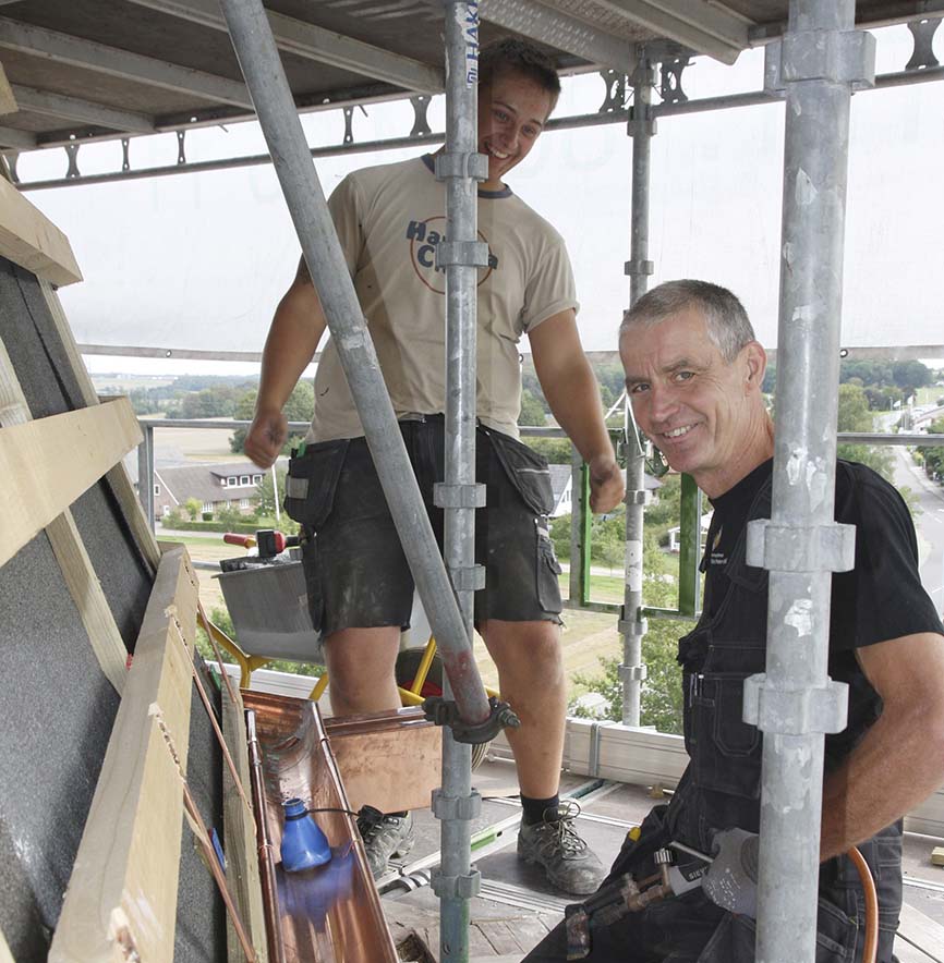 »Det så forbavsende godt ud inde under,« siger blikkenslager Søren Storebjerg, da vi afbryder ham og lærling Sebastian Holmkvist Rasmussen et øjeblik for at høre, om der er dukket overraskelser op.