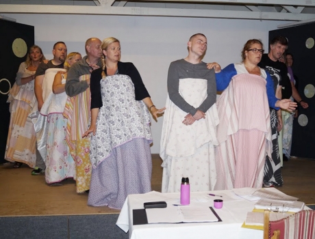 Et glimt fra en af de første prøver på 'Galten Revyen knalder brikker'.