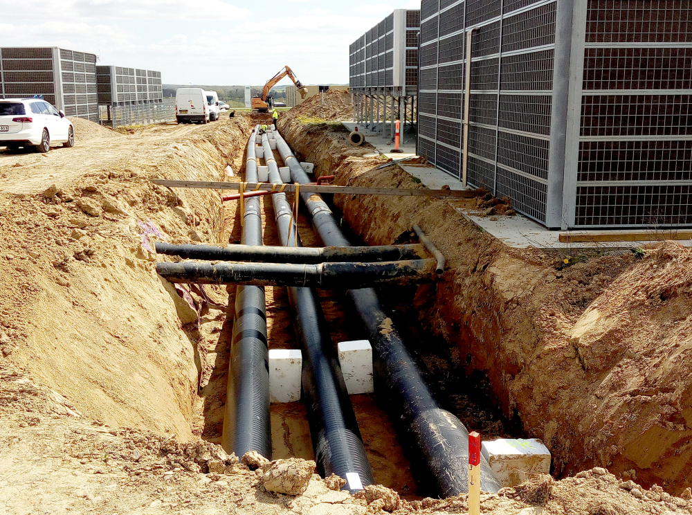 »Ledningerne, der ses på billedet, er en twin-ledning der skal forsyne Storring, Stjær, og de to enkelte er forsyningsledningen til Harlev.«