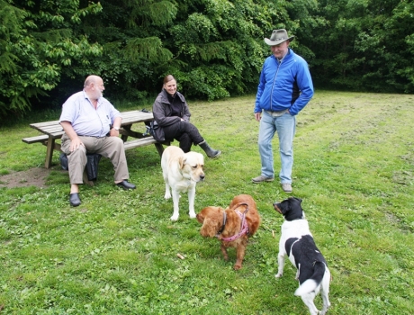 Galten Hundeskovs Venner, har allerede medlemmer. Her er Bent og Latifa i selskab med formanden for foreningen Ole Jensen (stående). De mødes ofte ude i skoven med deres hundevenner King, Mille og Verner.