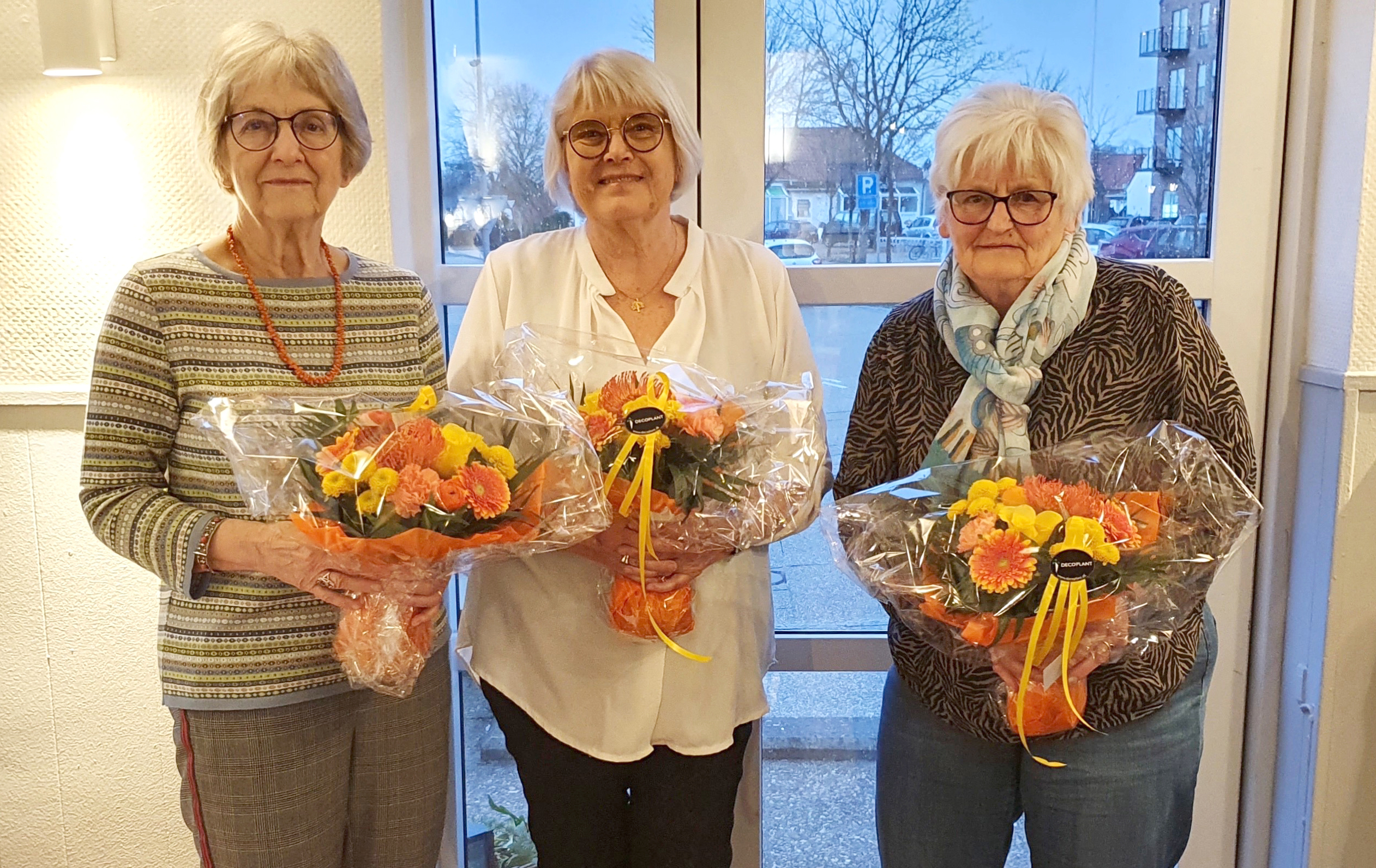 »Vi benyttede aftenen til at markere, at Lone Laursen og Kirsten Madsen har været med i Røde Kors i 10 år, samt at Lillian Rasch har været med i 15 år. Tillykke med jeres nåle og tak for jeres flotte indsats indtil nu.«