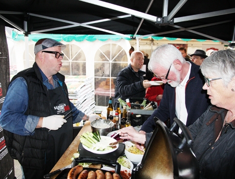 Den fra TV2 kendte madekspert Claus Holm serverede lækkerier i et telt foran butikken.
