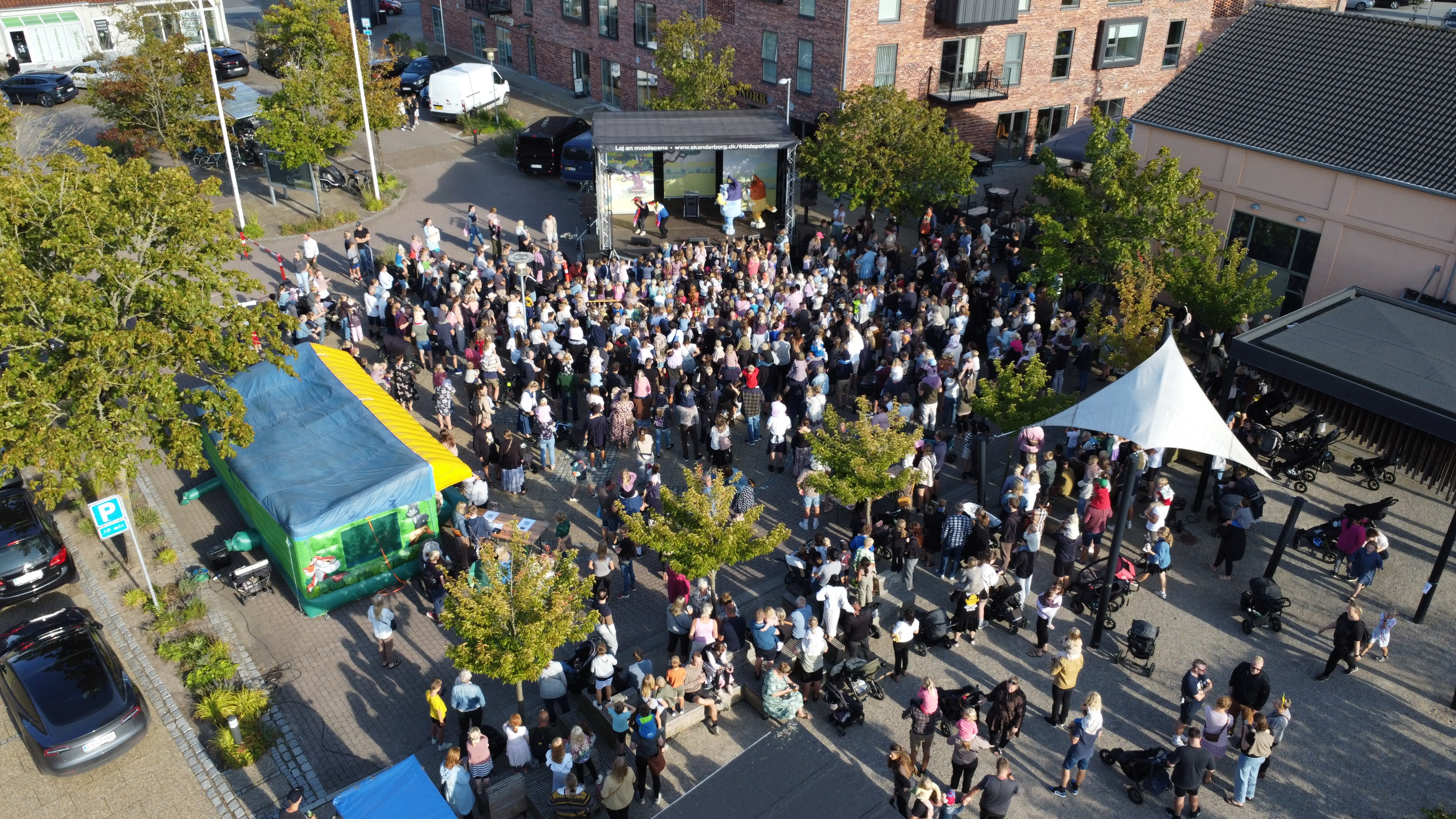 Her nogle glimt fra dagen, der bød på bl.a. den årligt tilbagevendende fodbolddyst mellem Skovbyskolen og Gyvelhøjskolen, et populært børneshow med dukkerne Bluey og Bingo og til slut et ildshow på Torvet.