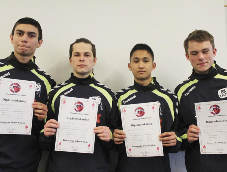 Fire unge BK Galten-boksere med de diplomer de opnåede i slutningen af sidste sæson. Snart kan de debutere som kampboksere.