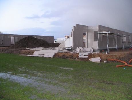 En del vægelementer i dette nybyggeri i Skovby Nygaard-udstykningen klarede ikke mødet med stormen »Gorm«.