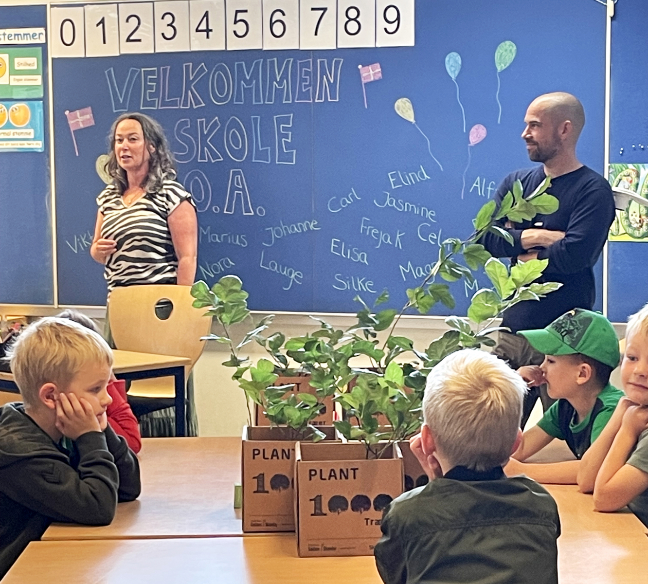 Det er så småt ved at være en tradition, at der står en kasse med en grøn plante til alle 0. klasserne og byder eleverne velkommen til et forhåbentlig godt og givende skoleliv.