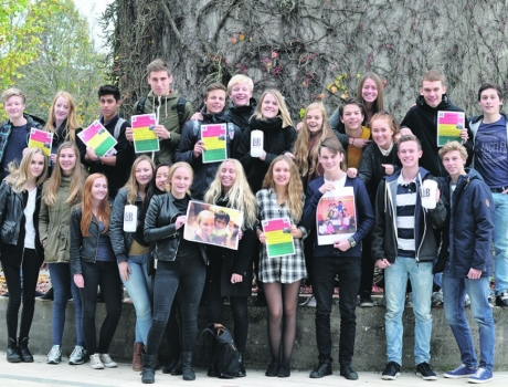 1.z. på Skanderborg Gymnasium. Glade og med troen på, at klassen LIB-projekt bliver en succes. På billedet ses også den plakat man har brugt til promovering i løbeklubber og på lokale skoler. På billedet findes en række fra Galten og omegn Camilla Vraa (Stjær), Anna Fabian (Galten), Kristine Skouvig (Skovby), Julie Junker (Galten), Sofie Gadegaard (Galten) og Lærke Pedersen (Nr. Vissing).
