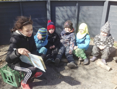 Både lyttere og læser har stort udbytte når Næshøjskolens læseambassadører læser højt i byens børnehaver.