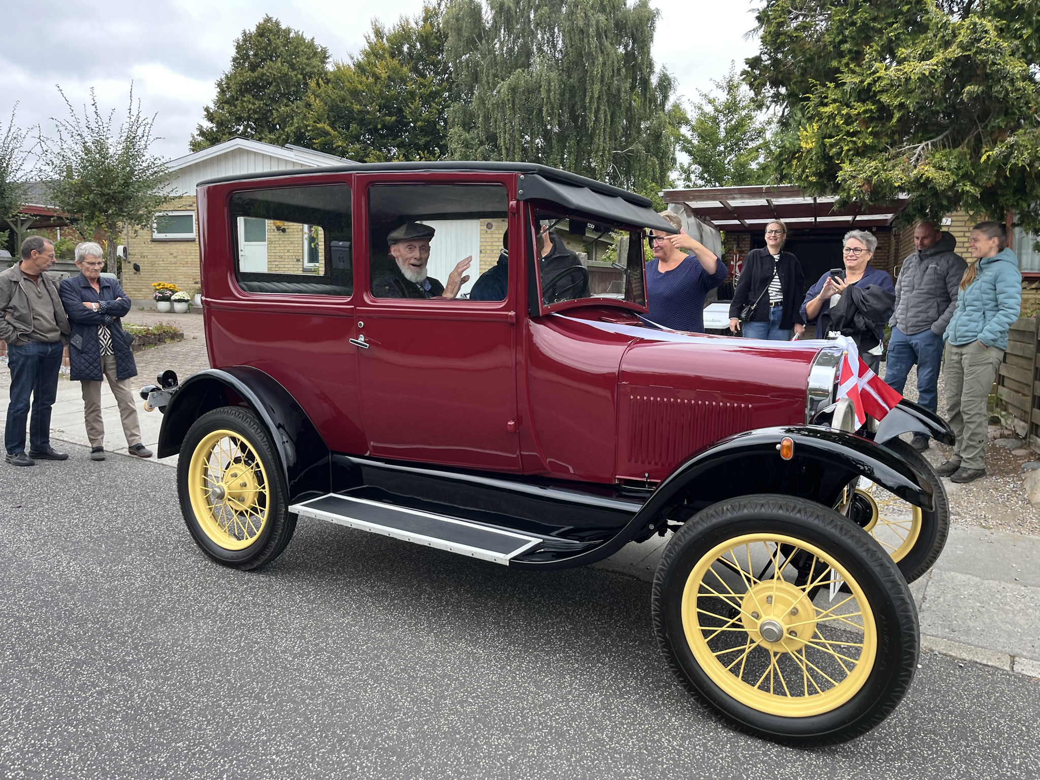 Alle var blevet opfordret til at flage for Peter, og Peter fik sig en køretur i veteranbil rundt i byen, så han kunne se sin fejring.