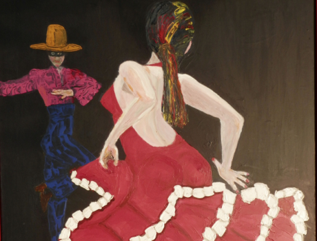 Flamenco-danserne her er et af Kristian Lindskovs malerier som kan ses ved udstillingen på Galten Bibliotek.