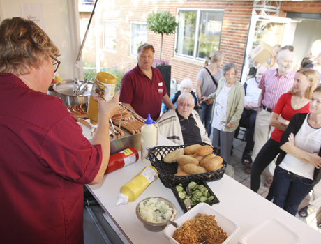 Lokalcenter Tjørnehaven har tidligere haft besøg af gourmet-kokke. I onsdags forfulgte man et andet kulinarisk spor, da der fra en pølsevogn foran hovedindgangen blev serveret hotdogs. Pårørende til beboerne kunne også spise med mod en beskeden egenbetaling.