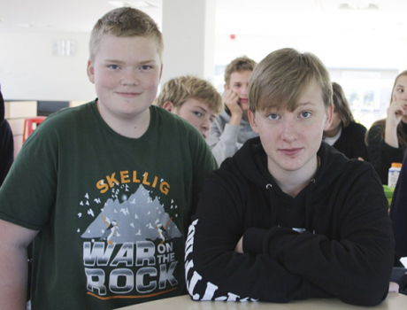 Oskas Mullally (t.v.) og Jens Trinderup fra 8.e på Gyvelhøjskolen gik forleden efter en plads i skolens elevråd.