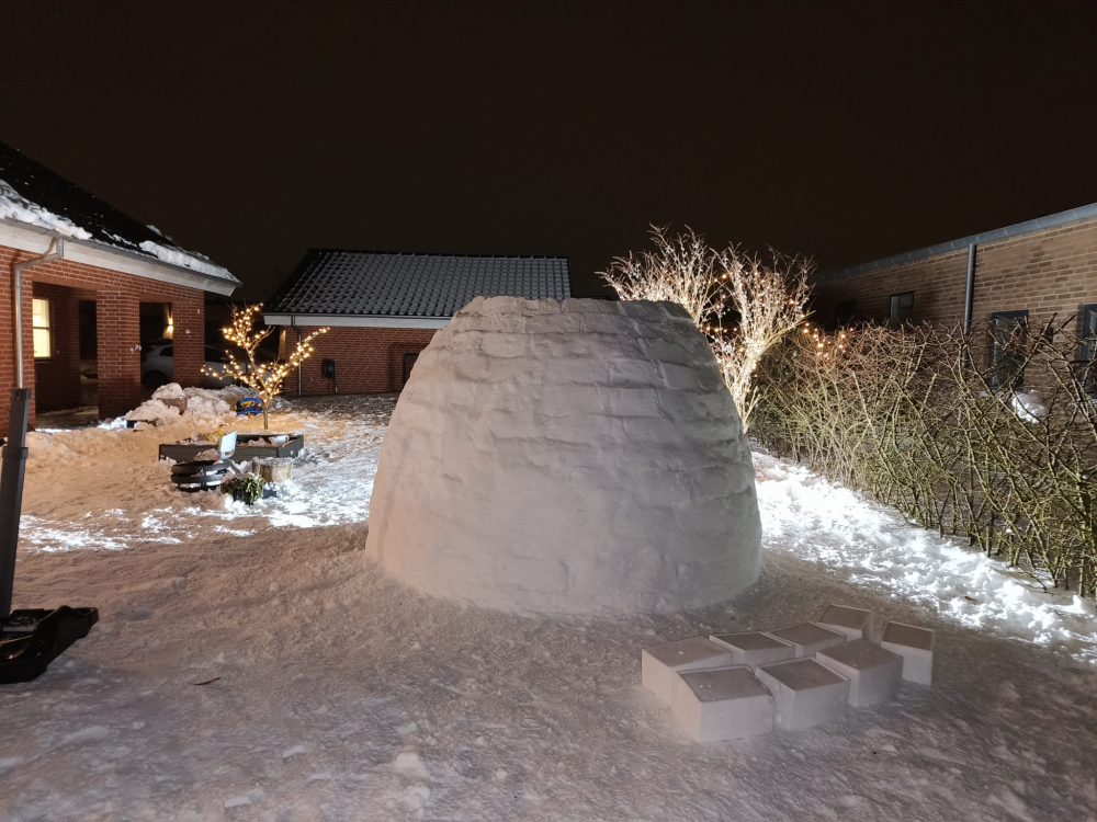 En villahave på Møllen i Skovby Nygård-kvarteret var i sidste uge omdrejningspunkt for et noget usædvanligt byggeprojekt: en ægte iglo.