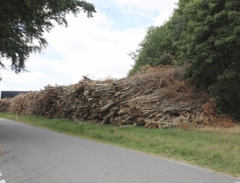 Langs Mosegårdsvej ligger store mængder træer som er høstet i forbindelse med udtyndingen i Klankskoven. Efter flisning kommer træet til at gøre nytte som varmegivende biomasse hos lokale varmeværker.