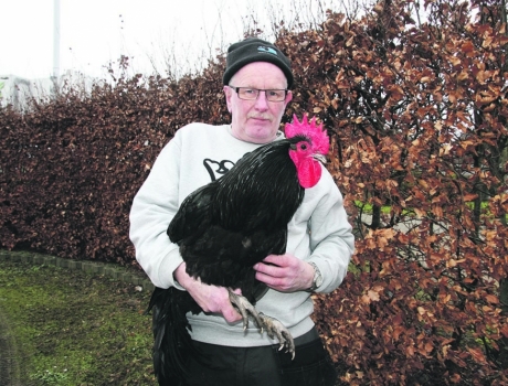 John Mortensen med et prægtigt eksemplar af racen Sort Australorps. I lighed med en række artsfæller skal den på udstilling i Silkeborg i weekenden.