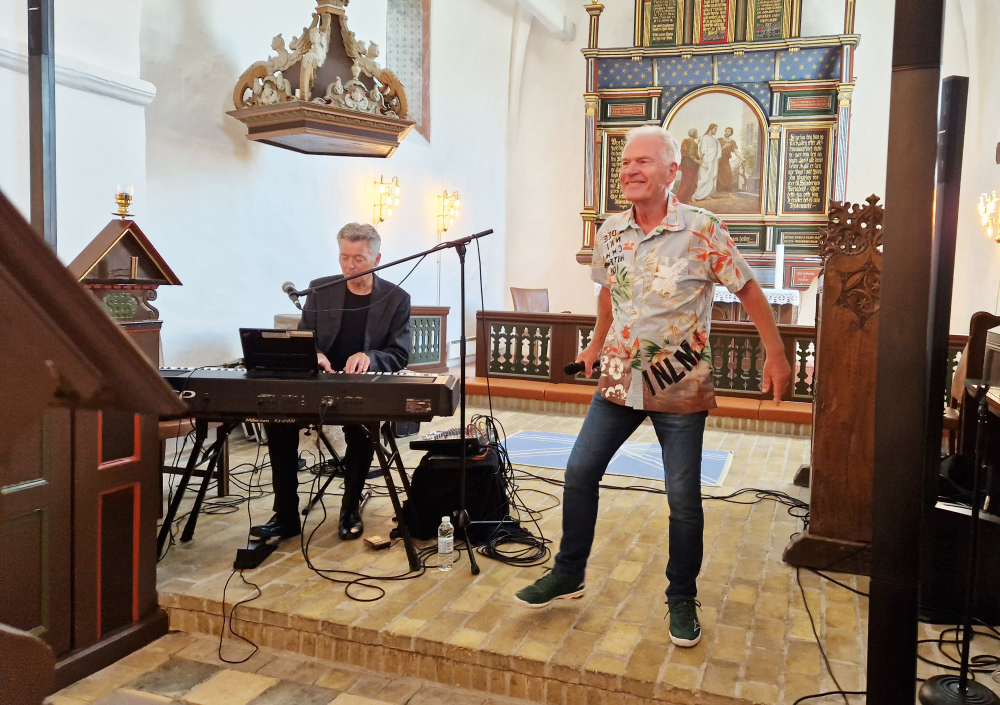Ravn indtog hele kirkerummet da han undervejs vandrede rundt blandt publikum og opfordrede til at synge med.