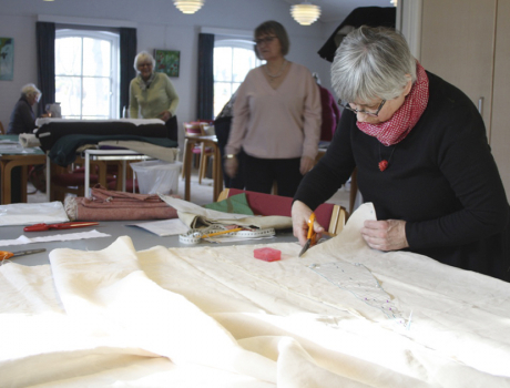 Lyden af arbejdende symaskiner fylder i øjeblikket Skivholme sognegård.