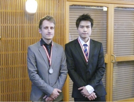 Møbelsnedker Mathias Juul Overvad fik en sølvmedalje og maskinsnedker Jinda Chamnanpood en bronzemedalje overrakt af H.K.H. Prins Joachim ved en ceremoni på Aarhus Rådhus i torsdags.