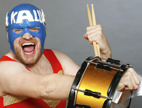 Den knap 2 meter høje og skøre Kalle kendt fra Ramasjang underholder ved at slå på trommer og alt muligt andet.