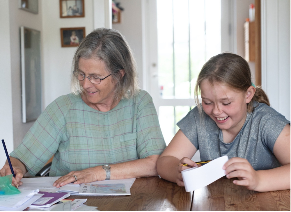 En skattejagt på ord rundt omkring i huset, er en del af den leg og læring, som bringes i spil, når 69-årige Marianne Hansen hver uge mødes med 11-årige Cecilie for at støtte hende i at blive bedre til at læse og skrive.
