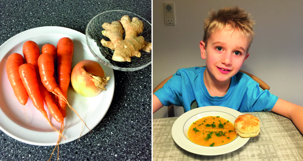 Mona Hald har atter været i køkkenet og foreslår til endnu en kold januar-uge at servere ingefær-gulerodssuppe med tilhørende skinke-boller.