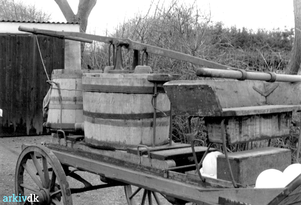 Brandsprøjten kunne køres på en hestevogn til brandstederne eller øvelserne for brandfolkene. Den passede bedst til at blive sat på en fjedervogn, der var bredere i bunden end den almindelige arbejdsvogn ved landbruget i 1950’erne, kassevognen.