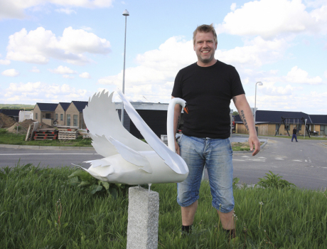 Den kreative smed, Christian Sejr, har skabt en svane, der nu våger over en rundkørsel i Svaneparken.