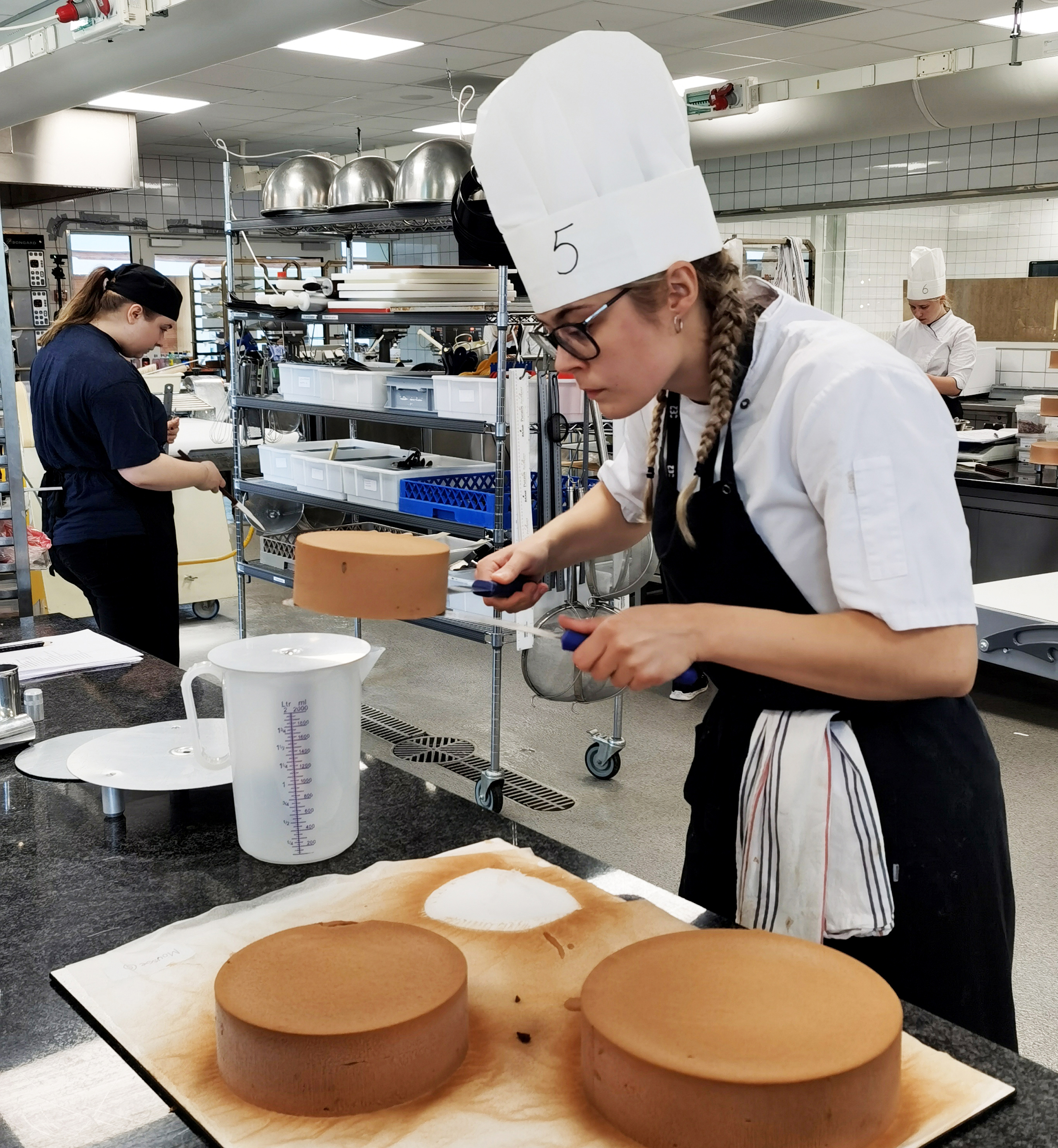 »Prøven foregik på Danmarks eneste konditorskole, ZBC i Ringsted. Vi var otte elever oppe til svendeprøven, og vi havde to skuemestre, der skulle vurdere os alle fra top til tå. Sådan en dag bliver der givet ufatteligt mange karakterer. Alt fra hygiejne, håndtering, udarbejdning og så videre,« fortæller 23-årige Camilla Stampe-Degn om oplevelsen ved svendeprøven.