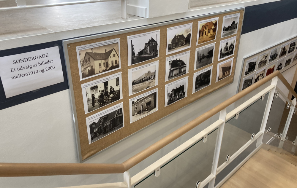 Udstillingen kan ses på trappen mellem Biblioteket og lokalarkivet, der har til huse i kælderen under biblioteket.