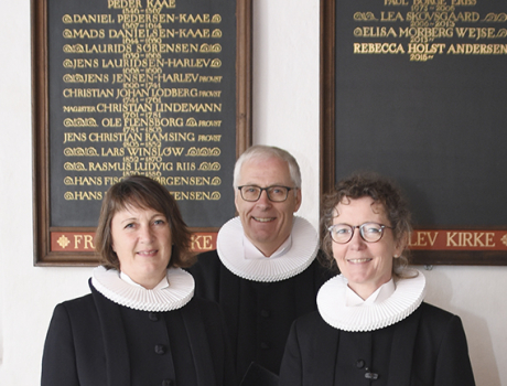 Provst Esben Andersen mellem de to sognepræster Elisa Morberg Wejse (t.v.) og Bente Madsen.