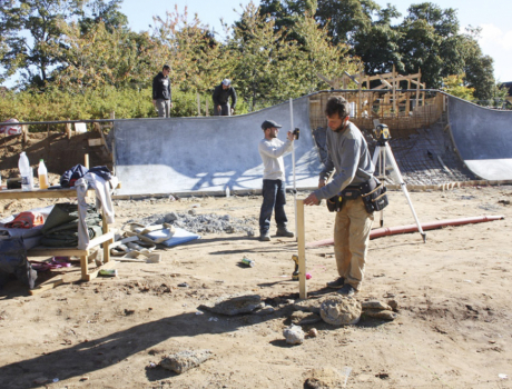 Bag hegnet, som omkranser byggegrunden, arbejdes der nu fokuseret med at støbe og udfærdige skatebanen, som allerede har taget så meget form, at man levende kan forestille sig, hvordan skatere kommer til at foretage dristige tricks på de stejle kanter.