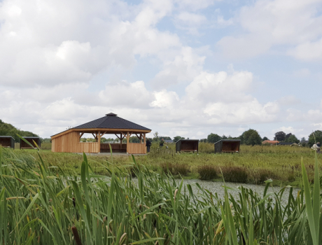 Fra både bålhytte og sheltere har man kig til den ny anlagte Tinbæksø, som er etableret af Skanderborg Forsyning.