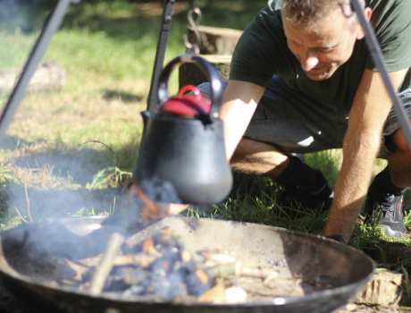 »Hver gang vi mødes, er der bål og kaffe på kanden. Det gælder om at bakke hinanden op, så alle får størst mulig succes med at nå i mål. Vi arbejder seriøst med rygestoppet, men der skal også være plads til den jargon, som kun mænd kan skabe sammen,« siger Søren Drivsholm.
