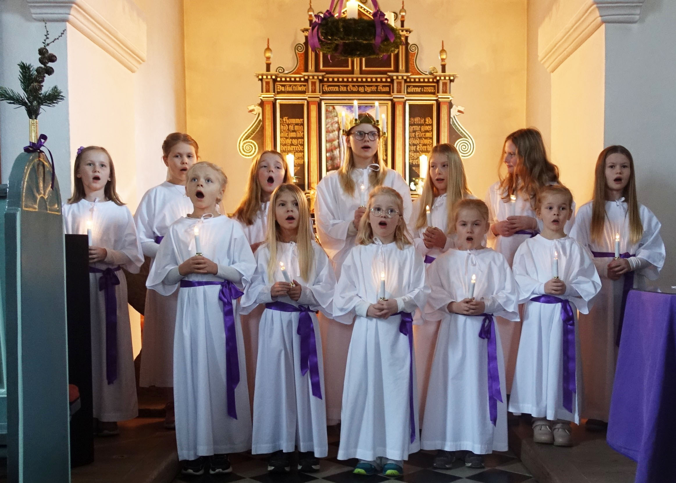 Luciaoptog ved spire- og juniorkor har i mange år været en fast tradition 1. søndag i advent i Skovby under ledelse af organist Anne-Marie Elbech.